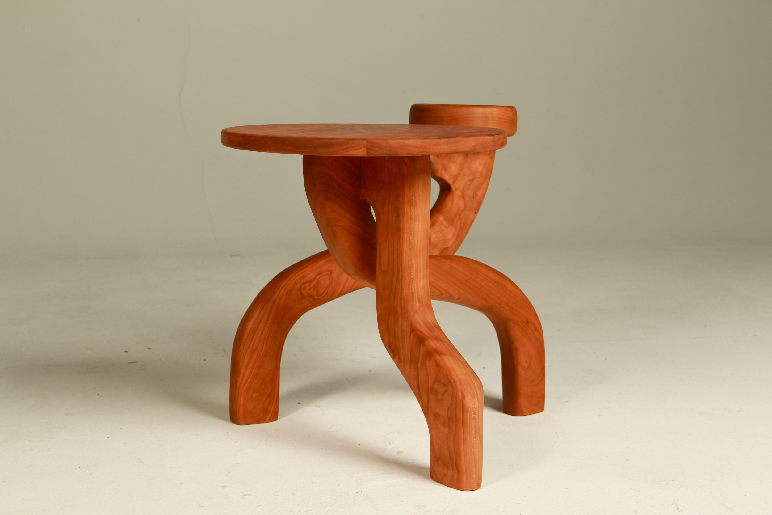 The Serveur Side Table stands with intention; its curved cherry wood legs recall the graceful stance of a waiter mid-service. Each leg bends with a subtle flourish, like the elegance of someone trained to move effortlessly through space.