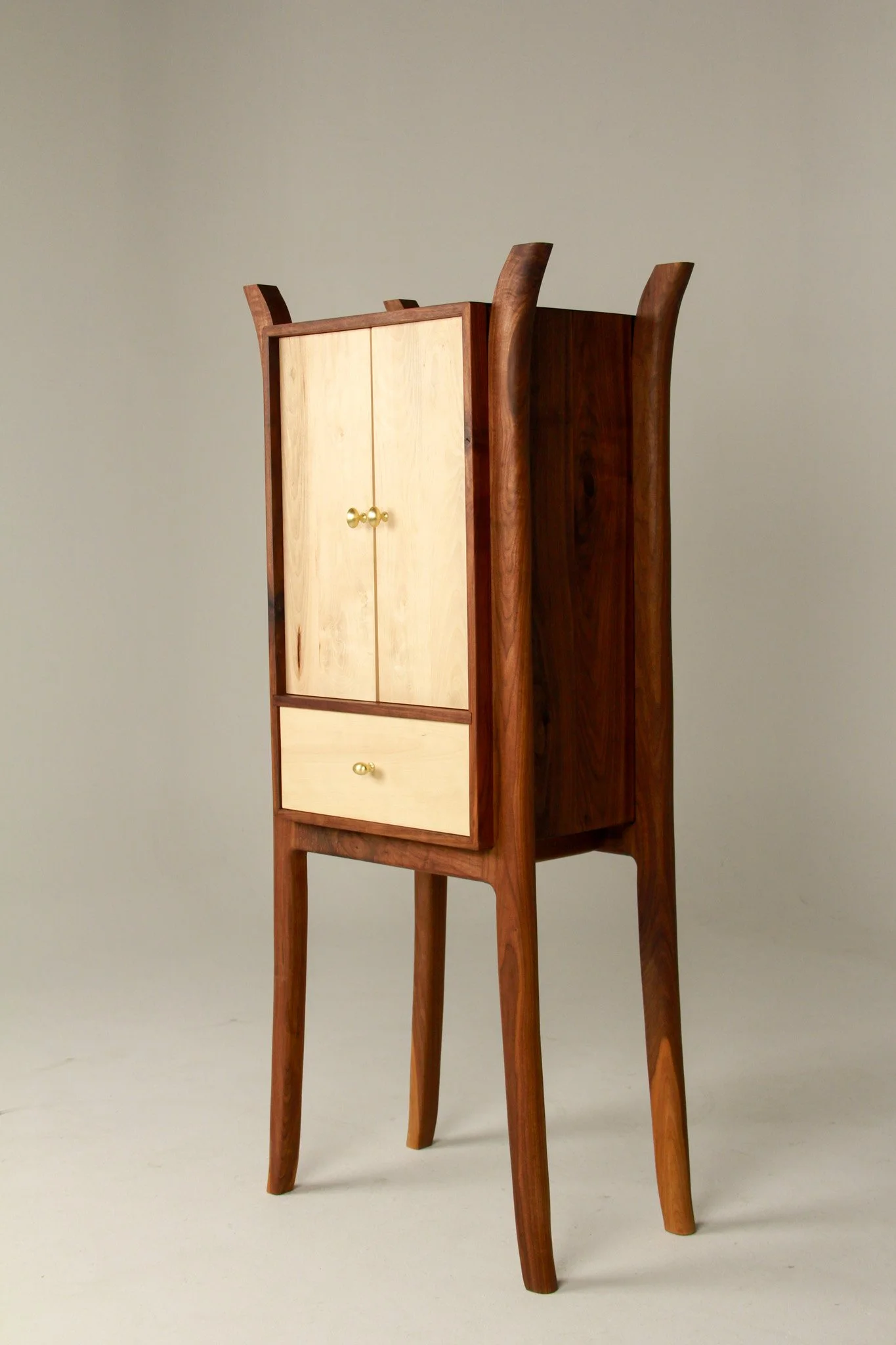 The last piece Tom touches before seeing Patsy stands like a quiet pause, holding the space between movement and greeting. Its maple front bears a soft ghost of wear, like the shadow left behind a long-hung frame, marking time through absence. The patina gathers not just in story but in function, traced in the brass drawer pulls, warmed by touch, shaped by use. This is a cabinet that remembers every reach, every return.
